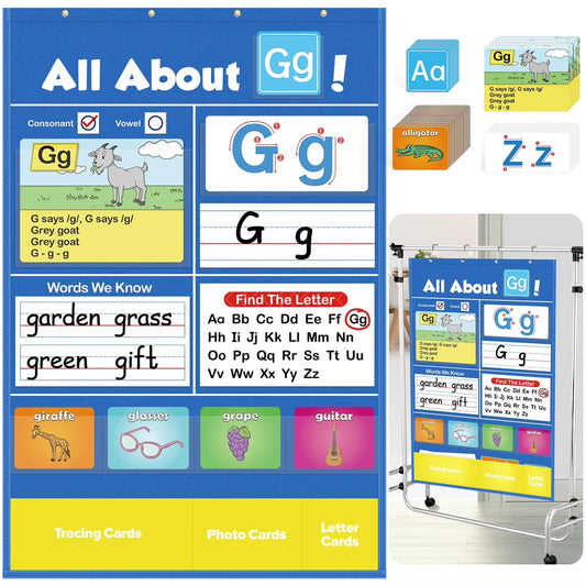 Alphabet Learning Pocket Chart Set Alphabet Wall Chart ABC Flash Cards Letter Learning Chart for Early Childhood Education